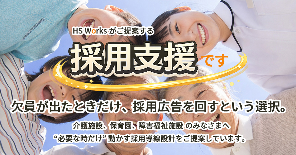 もちろん、福祉業界以外でも使える手段ですので、人員確保にお悩みの企業さまは是非ご覧ください。
